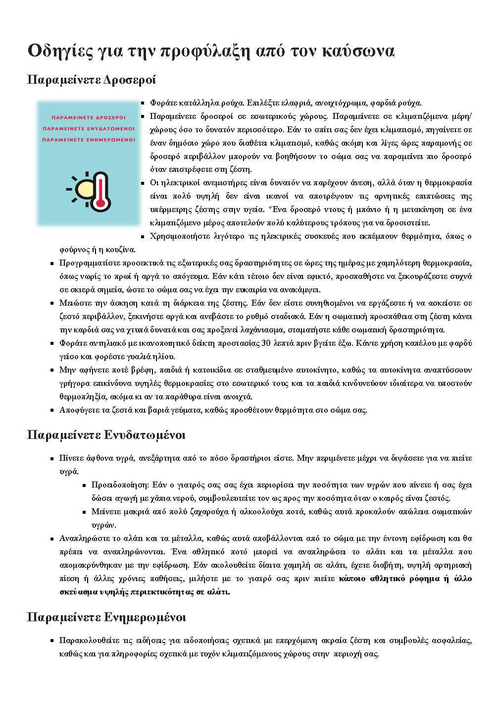 Οδηγίες για την προφύλαξη από τον καύσωνα